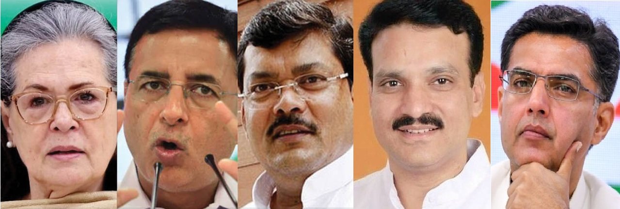 कांग्रेस में, सोनिया गांधी भी राजस्थान से राज्यसभा सांसद हैं जो पूर्व प्रधानमंत्री राजीव गांधी की पत्नी और पूर्व प्रधानमंत्री इंदिरा गांधी की बहू हैं। इनके पुत्र राहुल गांधी सांसद हैं और लोकसभा में विपक्ष के नेता भी। सोनिया गांधी की बेटी पुत्री प्रियंका गांधी वाड्रा भी सांसद हैं। राजस्थान से कांग्रेस के राज्यसभा सांसद नीरज डांगी पूर्व मंत्री के पिता दिनेश डांगी के बेटे हैं। रणदीप सिंह सुरजेवाला भी राजस्थान से ही राज्यसभा सांसद हैं, जिनके पिता कांग्रेस नेता शमशेर सिंह सुरजेवाला हैं और पुत्र आदित्य सुरजेवाला विधायक हैं। प्रमोद तिवारी राजस्थान के राज्यसभा सांसद हैं और पुत्री आराधना मिश्रा ‘मोना’ उत्तर प्रदेश में विधायक हैं। मुकुल वासनिक राजस्थान से राज्यसभा सांसद हैं, उनके पिता बालकृष्ण वासनिक भी मंत्री रहे। पूर्व केंद्रीय मंत्री शीश राम ओला के बेटे बृजेंद्र ओला लोकसभा सांसद हैं। वीरेंद्र सिंह विधायक हैं और इनके पिता नारायण सिंह पूर्व में मंत्री और विधायक रहे। शोभारानी कुशवाहा विधायक हैं तो उनके पति बीएल कुशवाहा भी विधायक रहे हैं। रूपिंदर सिंह कूनर विधायक हैं, जो पूर्व विधायक गुरमीत सिंह कूनर के बेटे हैं। विधायक रीता चौधरी के पिता राम नारायण चौधरी बरसों तक राजस्थान में मंत्री रहे। हरेन्द्र मिर्धा विधायक हैं और उनके पिता रामनिवास मिर्धा केंद्र में लंबे समय तक मंत्री रहे। इसी तरह सुशीला डूडी विधायक हैं और पति रामेश्वर डूडी पूर्व सांसद और नेता प्रतिपक्ष रहे। विधायक रोहित बोहरा भी कई सरकारों में मंत्री रहे प्रद्युम्न सिंह के बेटे हैं। अनिल कुमार शर्मा विधायक हैं जो पूर्व विधायक भंवरलाल शर्मा के बेटे हैं। मनोज कुमार विधायक के पिता भंवरलाल मेघवाल पूर्व में मंत्री रहे तो, विधायक सचिन पायलट के पिता कांग्रेस के कद्दावर नेता राजेश पायलट केंद्रीय मंत्री रहे और उनकी मां रमा पायलट भी विधायक व सांसद रही हैं। इस फेहरिस्त में लोकसभा सांसद हरीशचंद्र मीणा भी शामिल हैं। इनके भाई नमो नारायण मीणा पूर्व में केन्द्रीय मंत्री रहे हैं।